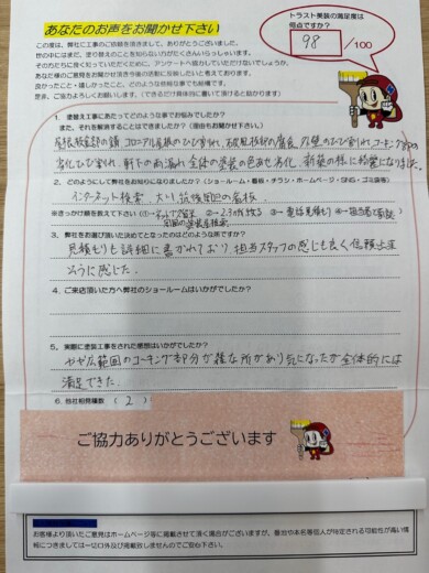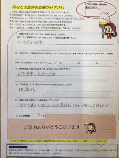 作業開始の挨拶や職人さんのマナーが徹底されておりとても良かったです。