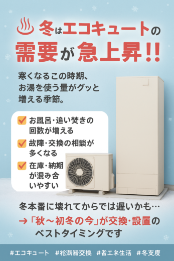 - 2025.10.16お知らせ★ご自宅の給湯器・エコキュート大丈夫ですか?★