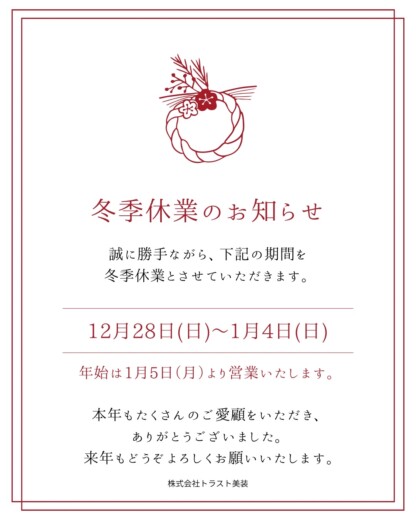 - 2025.12.26お知らせ年末年始休暇のお知らせ