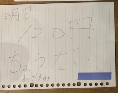 わざわざ手紙でお小遣いを要求してきました。