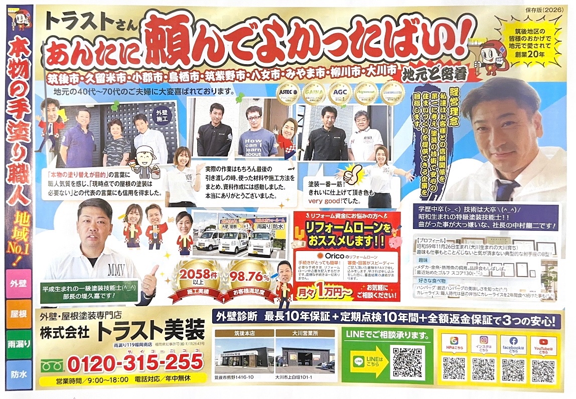 筑後市の方はもちろん、大川市、みやま市、八女市、久留米市、小郡市、筑紫野市などの方々