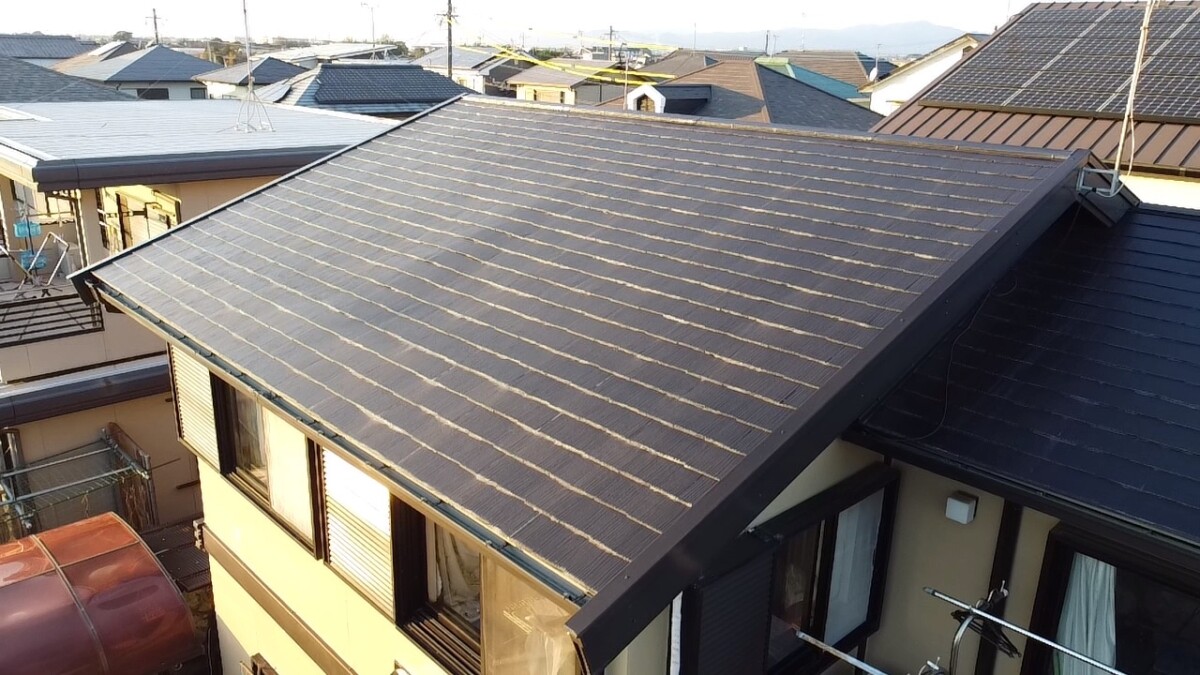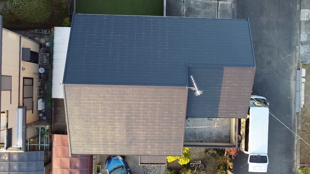 屋根は一番紫外線を受ける場所ですのでドローンを使用してしっかり確認していきます。