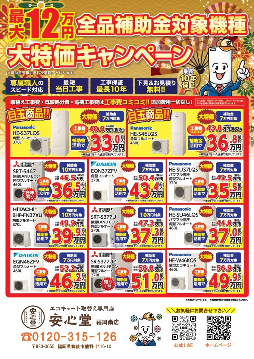 本年より塗装工事に加え【安心堂福岡南店】としてエコキュート事業をスタートさせました♨