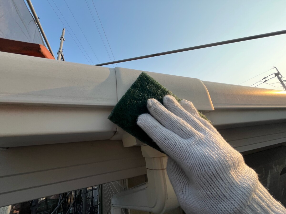 久留米市 付帯部下地調整2025.03.25進捗情報付帯部の板金個所や雨樋などは素材により外壁よりも早く色が褪める箇所になります塗装を行う前に必ず下地調整やケレン(ペーパーやマジックロン等で磨く作業)をしますそうすることにより素材と塗料の密着が良くなります!