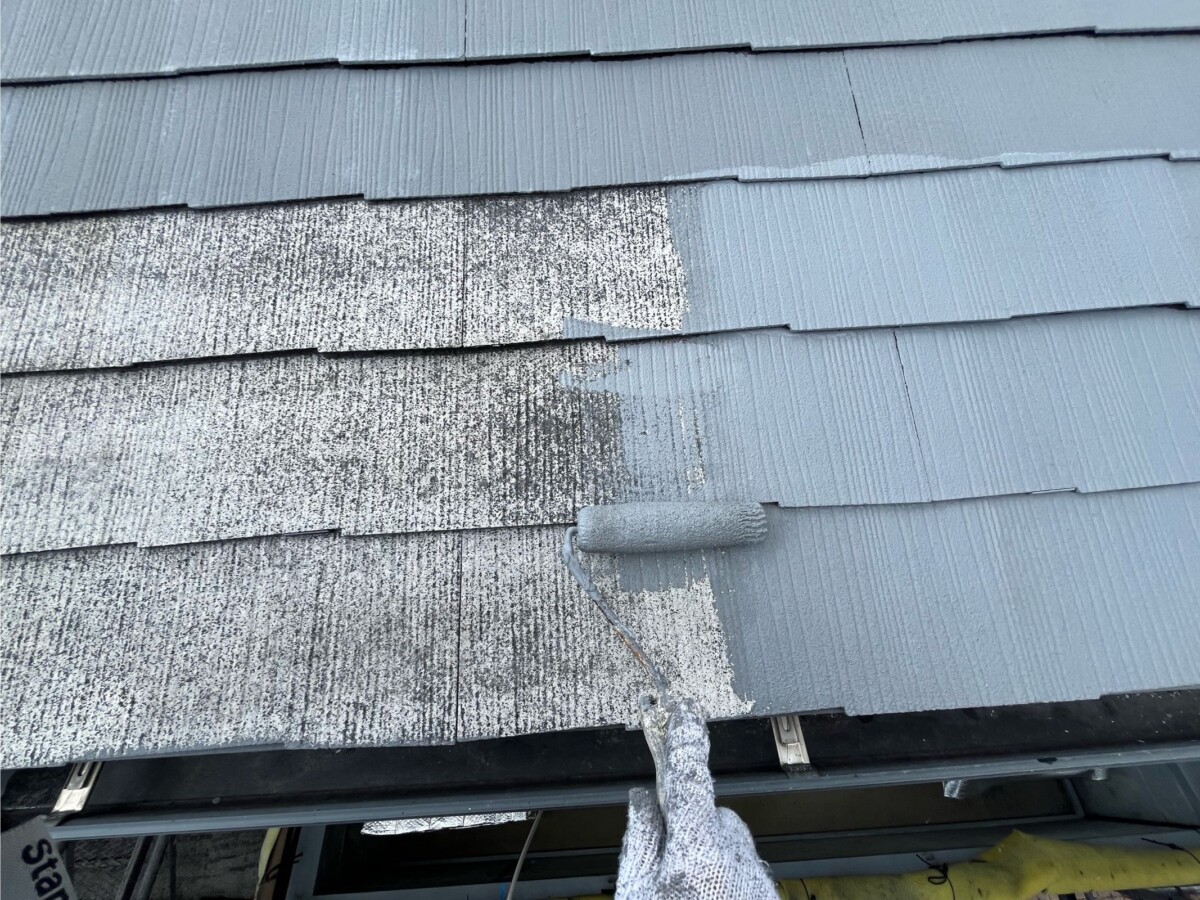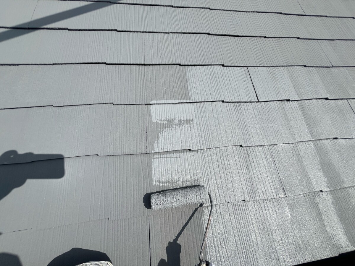 断熱・遮熱・遮音などの効果が高い塗装を使い上塗りを行います上塗り1回目