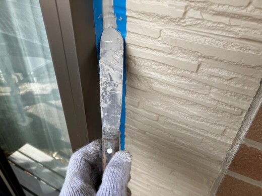 クリヤー塗布を行った外壁部分のコーキングは後打ちしていきます。