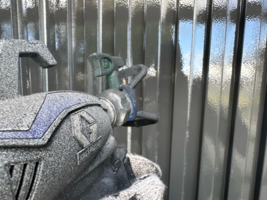 建物に付着している砂や汚れ、苔、カビなどを洗い流し綺麗にしていきます。しっかり洗い流す事で下塗り材上塗り材に密着に差が出ます。