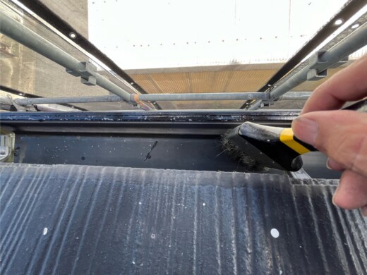 帯上コーキング:既存のコーキングを撤去し、新しいコーキングを充填していきます