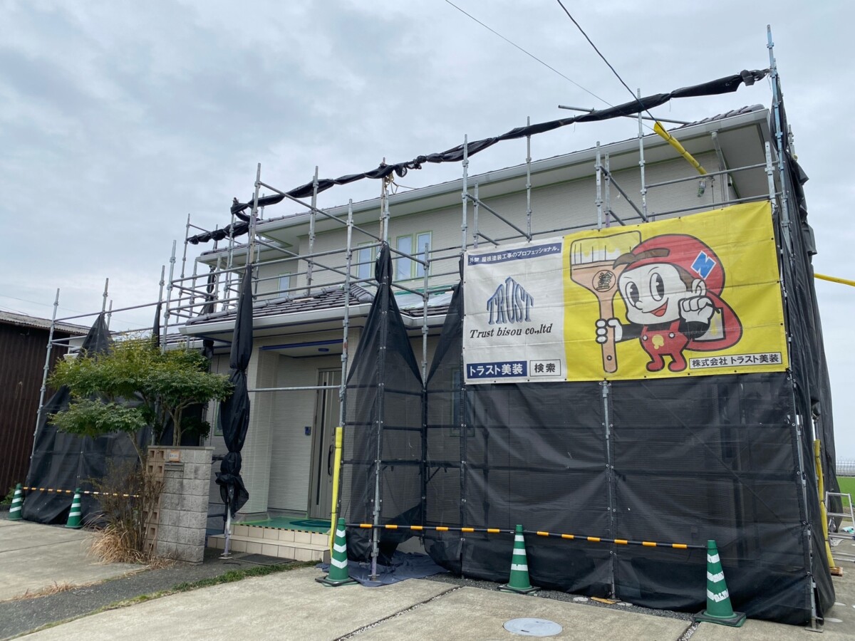 着工日当日は足場組立てを行います。お客様、御近隣の皆様へ配慮し足場職人が作業を行います。