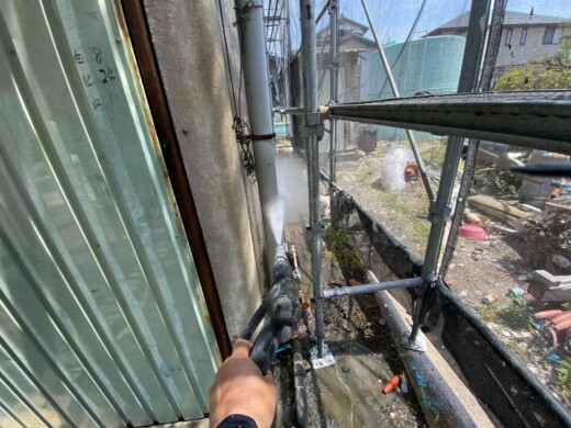 建物に付着している砂や汚れ、苔、カビなどを洗い流し綺麗にしていきます。