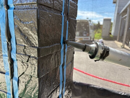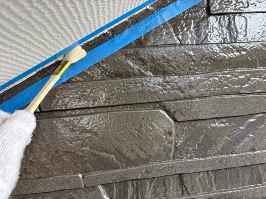 コーキングと外壁の密着を高める為にプライマー塗布を行います