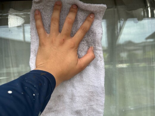 全箇所の塗装が完了後、サッシ窓を拭き上げます
