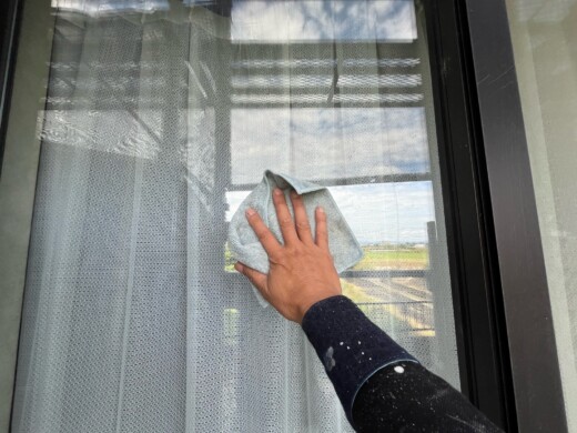 全箇所の塗装が完了後、サッシ窓を掃除します