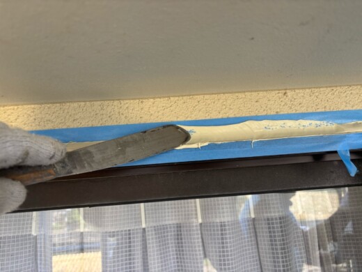 (コーキング抑え)表面の整えと空気を抜く為にヘラでしっかり押さえます