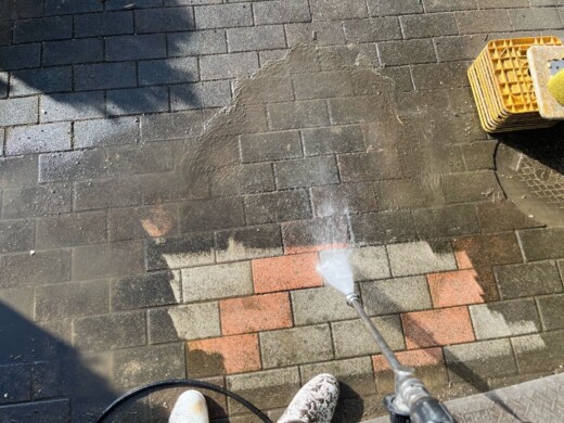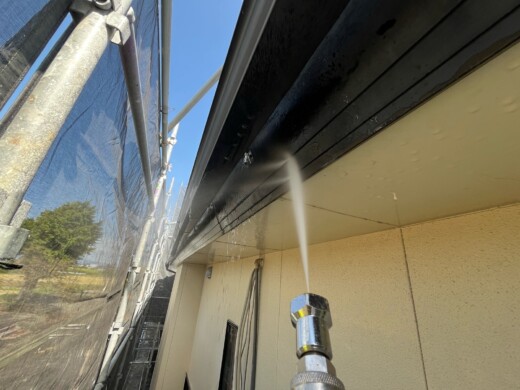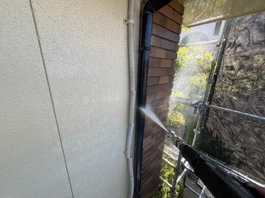 建物に付着している砂や汚れ、苔、カビなどを洗い流しキレイにしていきます