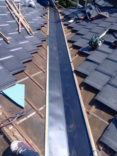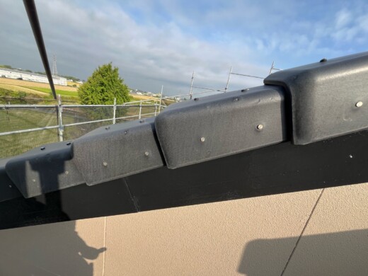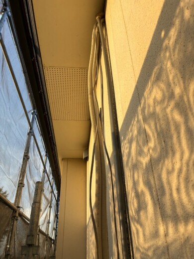 外壁塗装が終わった後、塗装したスリムダクトを取り付けます