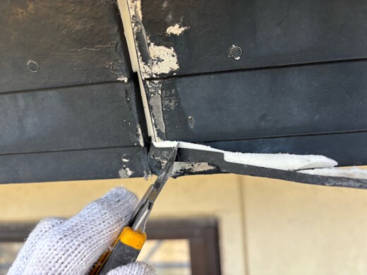 (外壁コーキング)経年劣化によりコーキングの弾力性が無くなり剥がれています