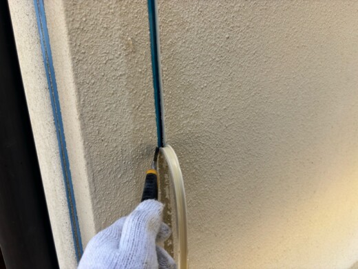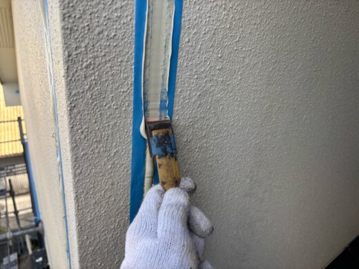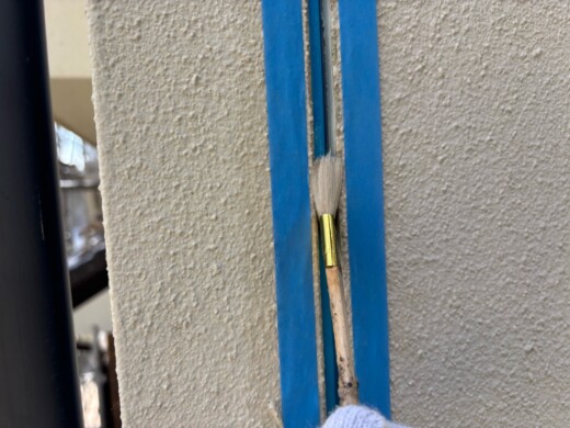(プライマー塗布)コーキングと外壁の密着を高める為にプライマーを塗布します