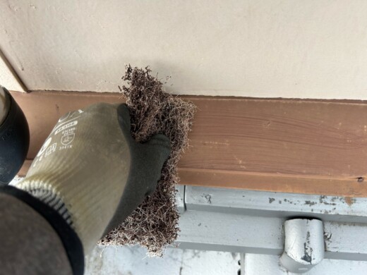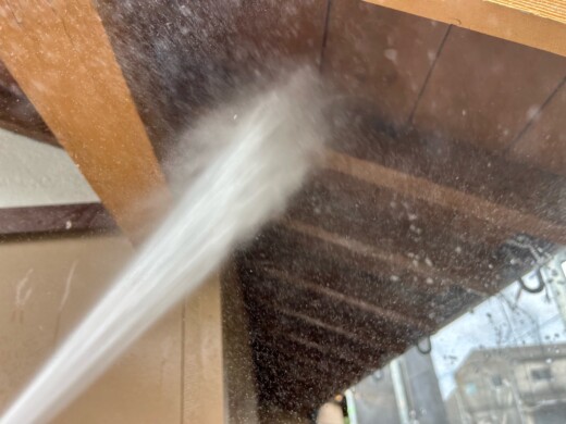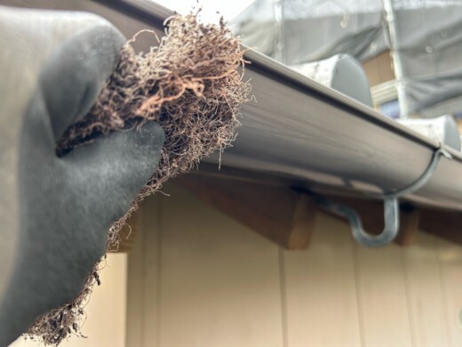 受樋の内側の砂や汚れを掃除します