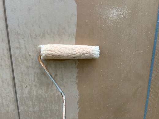 外壁材と上塗りの塗料がしっかり密着させる為に、下塗り材を塗装していきます