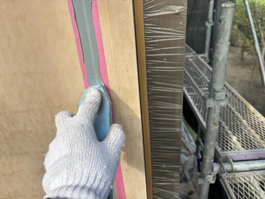 コーキングと外壁の密着を高める為にプライマー塗布を行います