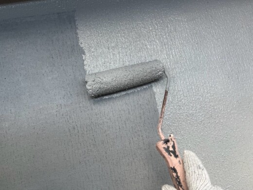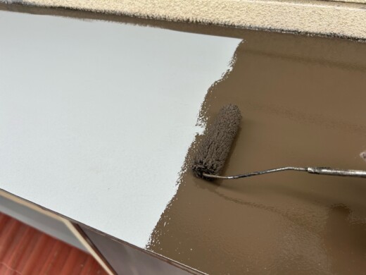 ローラーにて遮熱塗料をたっぷり塗装します