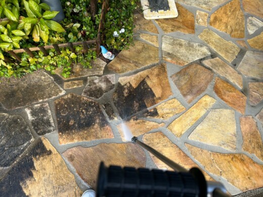 土間の汚れや苔も洗い流していきます