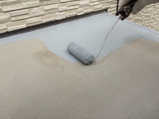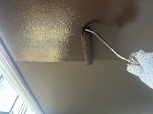 (上塗り1回目)ローラーで遮熱塗料をたっぷり塗装します
