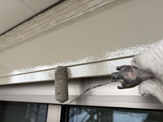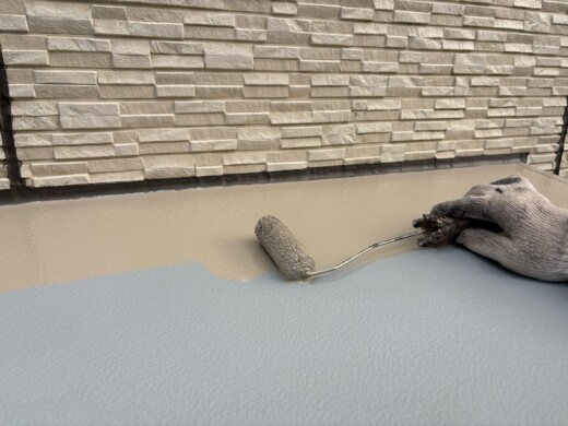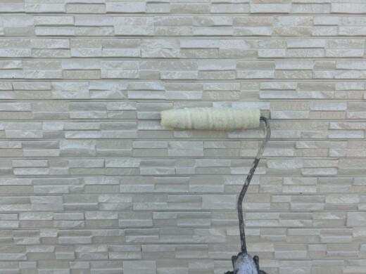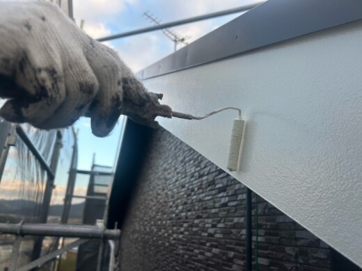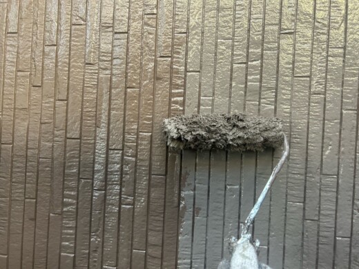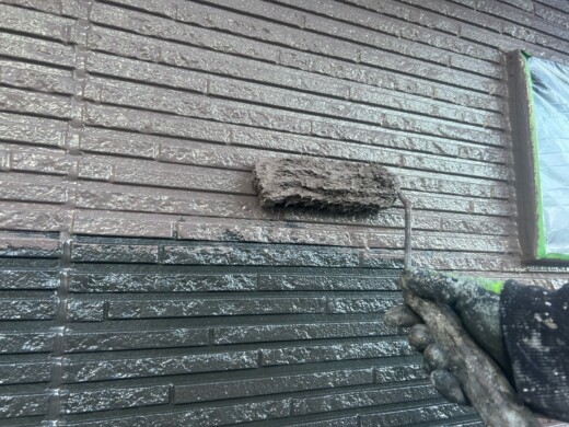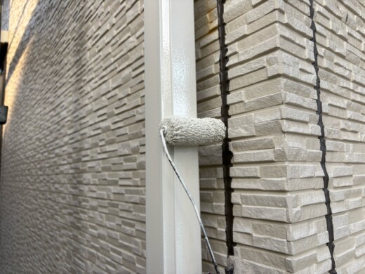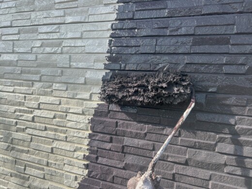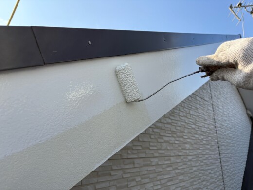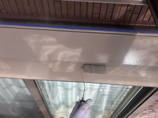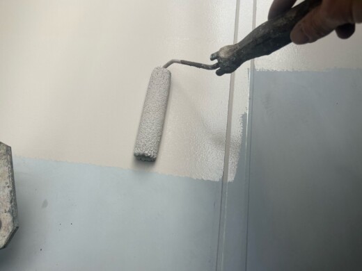 (上塗り1回目)お客様のご希望の色を塗装していきます、今回は2色使います