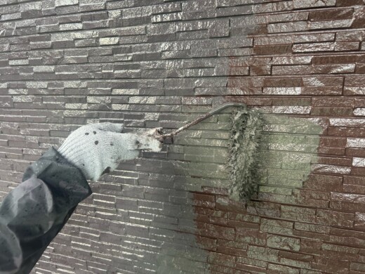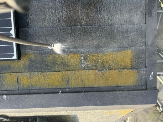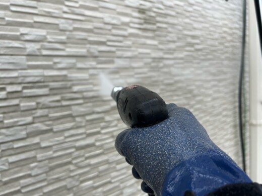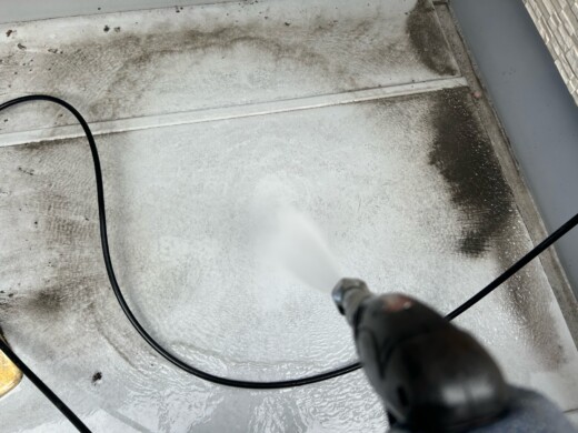 高圧洗浄でしっかり洗い流すことで、下塗り・上塗り材の密着力を良くします