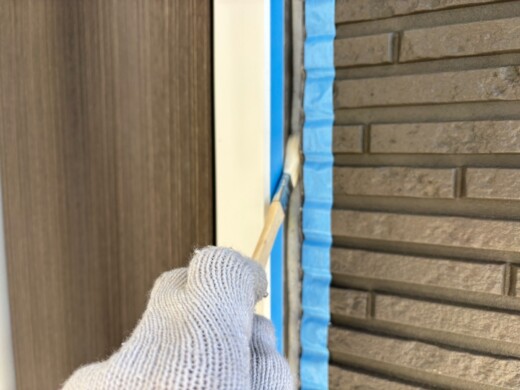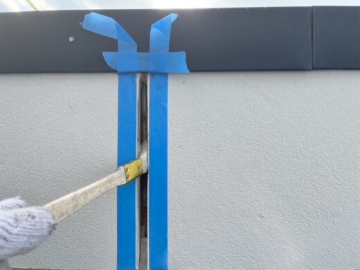 (プライマー塗布)コーキングと外壁の密着を高める為にプライマーを塗っていきます