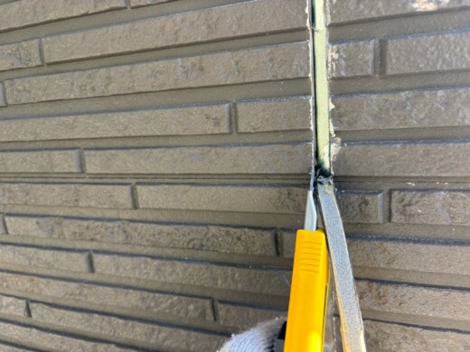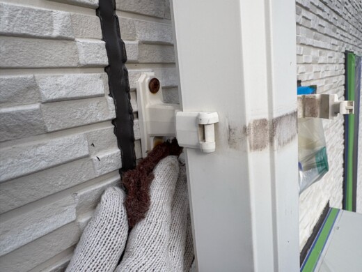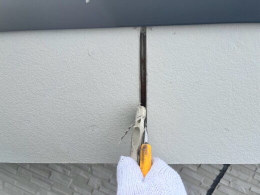 (既存コーキング撤去)丁寧に既存のコーキングを撤去していきます