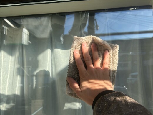 全塗装終了後、サッシ窓を拭き上げていきます