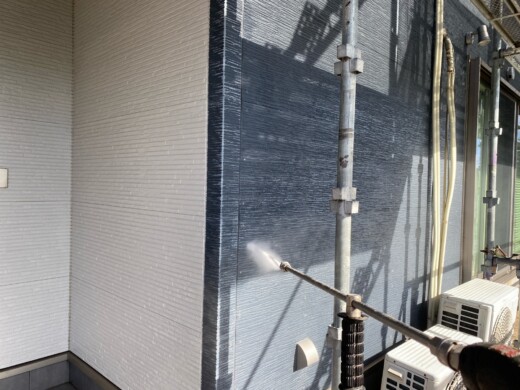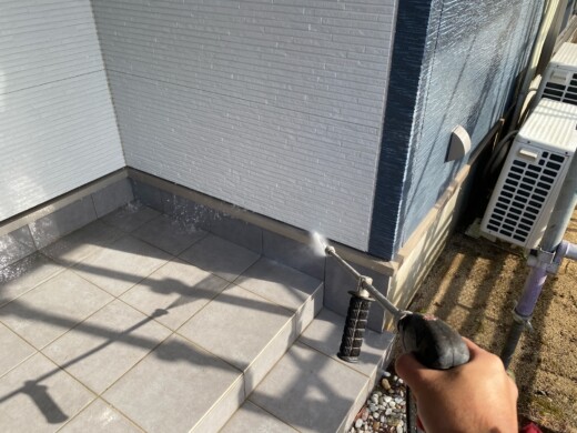 建物に付着している砂や汚れ、苔、カビなどを洗い流しキレイにしていきます