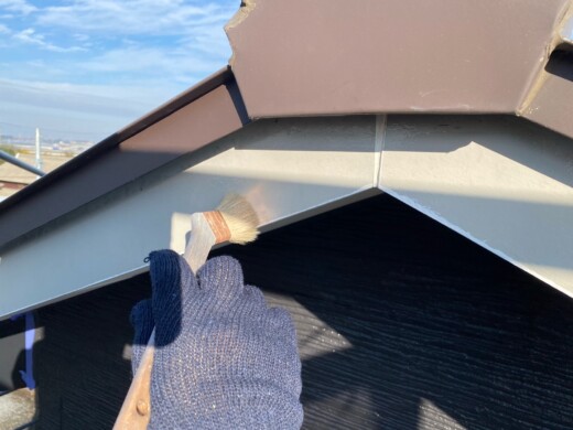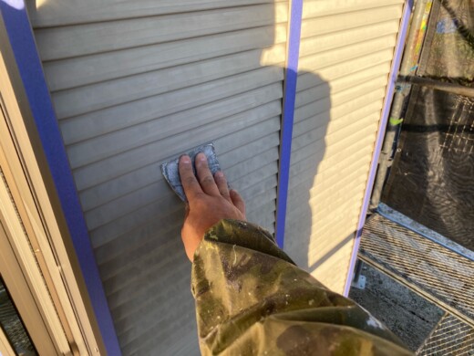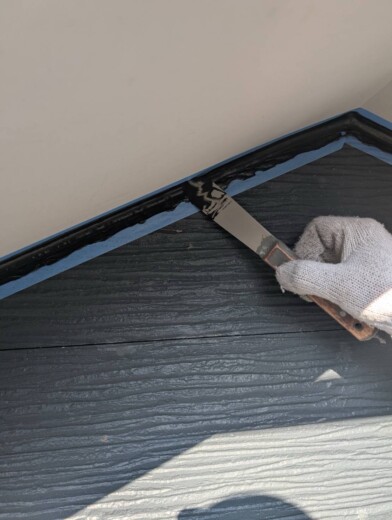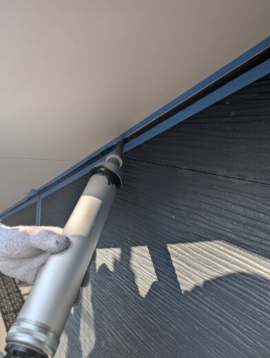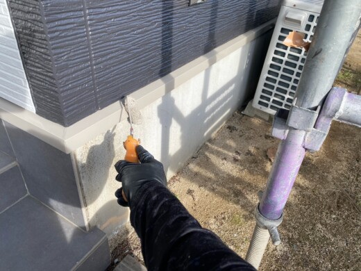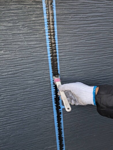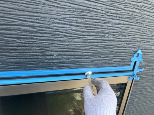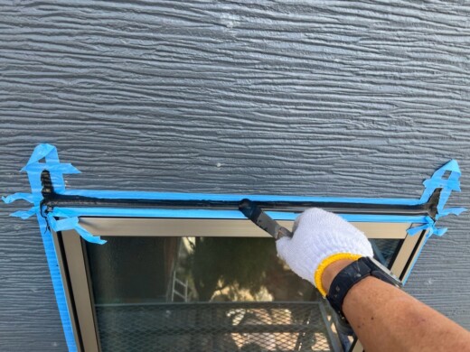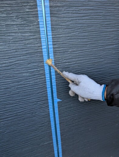 コーキングと外壁の密着を高める為にプライマーを塗っていきます