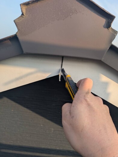 紫外線や雨風でダメージがありひび割れ隙間が現れている状態です