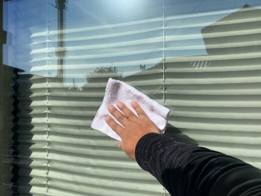 全箇所の塗装が終了後、サッシ窓を拭き上げていきます