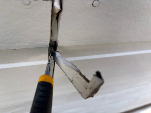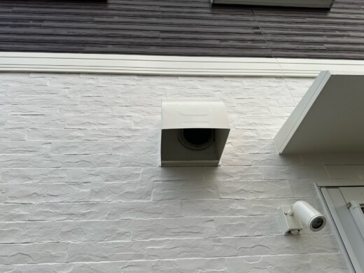 外壁塗装前に取外し、スリムダクトカバーを塗装し外壁塗装後取付ます