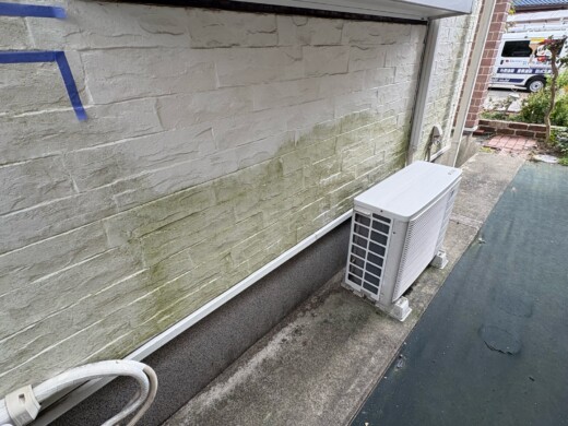 (外壁)カビや苔の繁殖が見られるのは、水分を含んで塗膜が劣化しやすい状況になっています