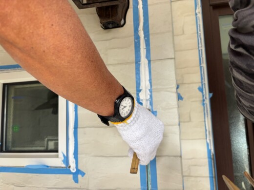 コーキングと外壁の密着を高める為にプライマーを塗布します