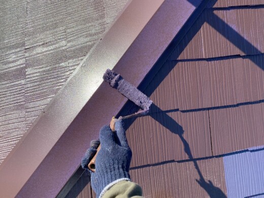 屋根材と上塗りをしっかり密着させる為に、下塗りを行います