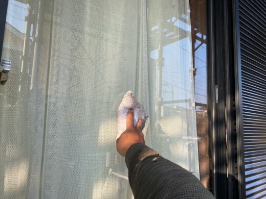 全ての塗装が終了後、サッシ窓を拭き上げていきます