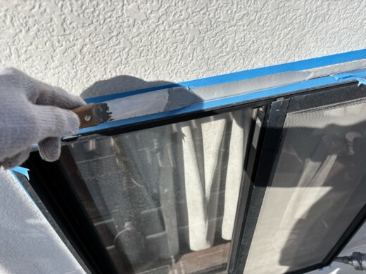 コーキングと外壁の密着を高める為にプライマーを塗っていきます