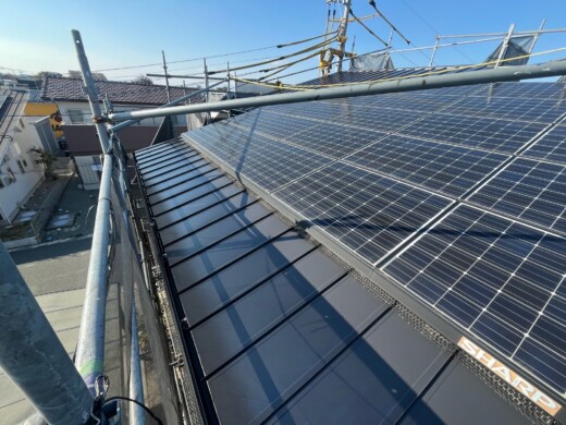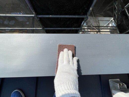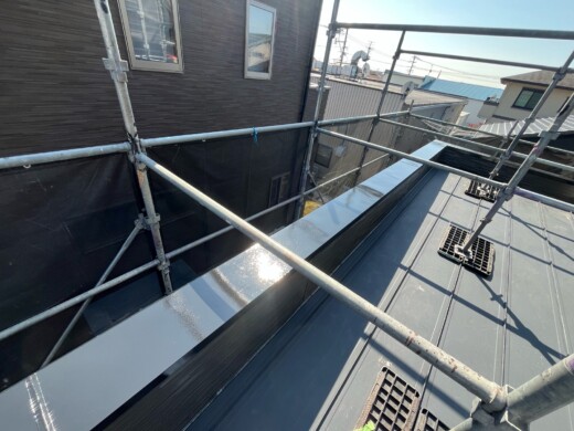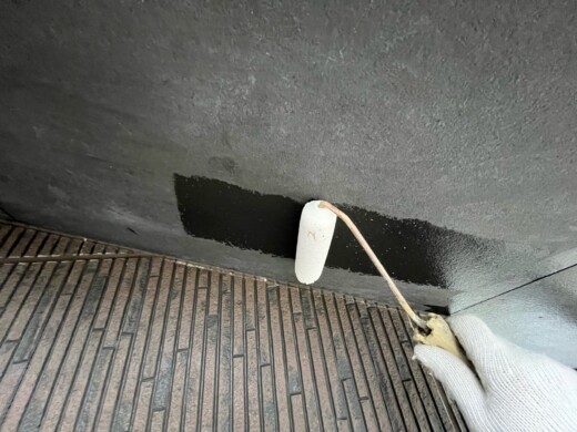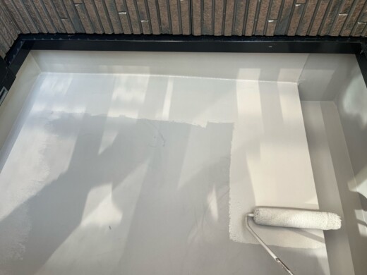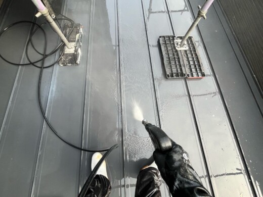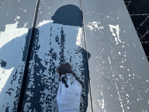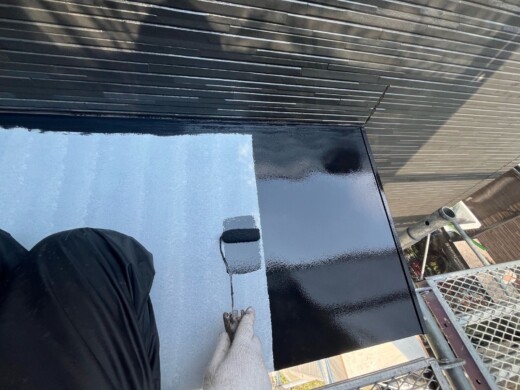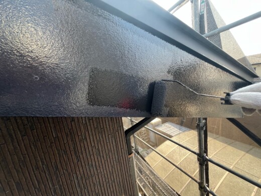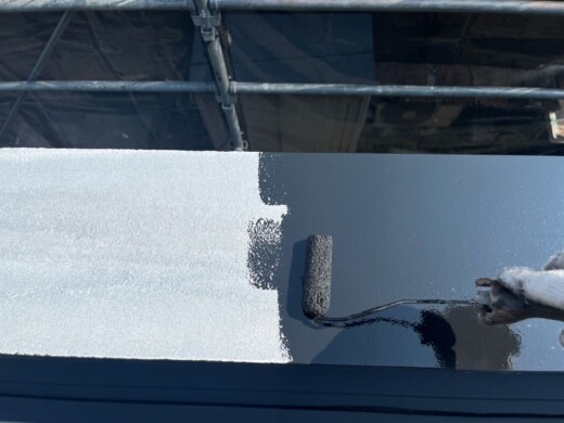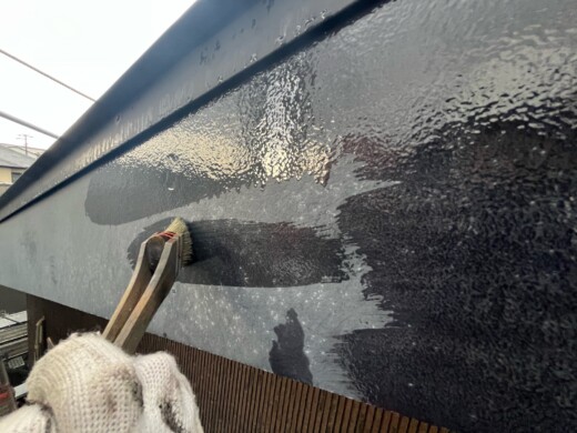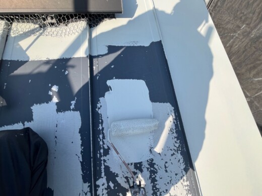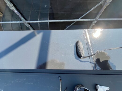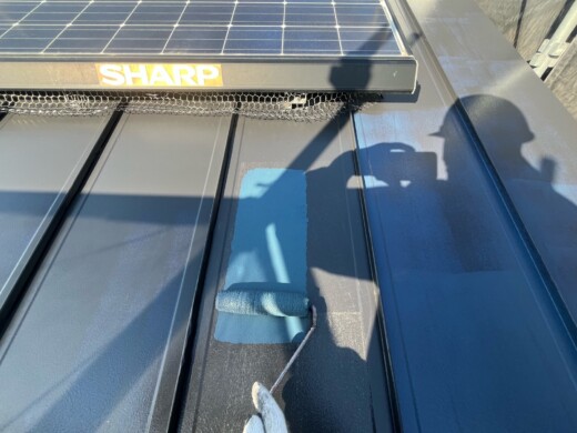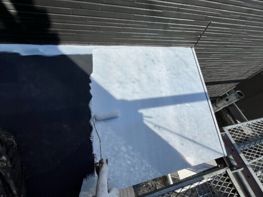 屋根材と上塗りをしっかり密着させる為に下塗りを行います