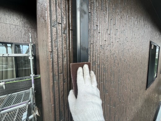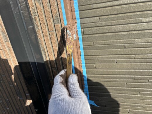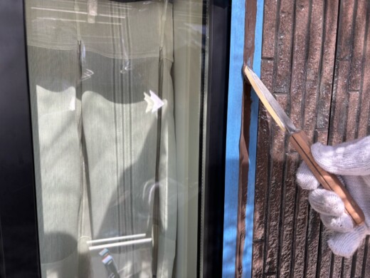 コーキングと外壁の密着を高める為にプライマーを塗布していきます