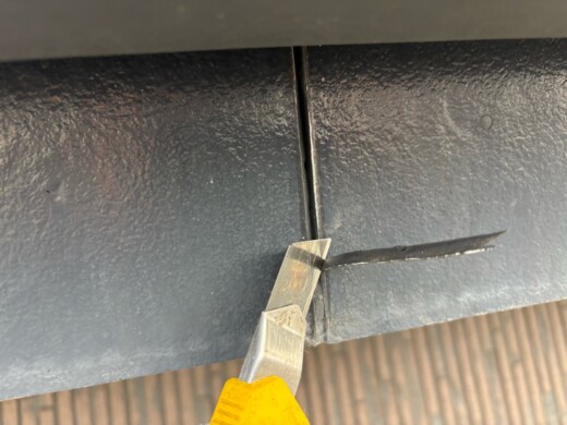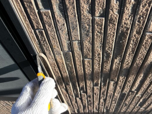 外壁とサッシ廻りの古いコーキングを丁寧に除去していきます
