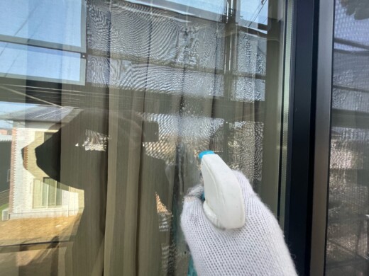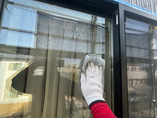 全ての塗装が終了後、サッシ窓を拭き上げていきます
