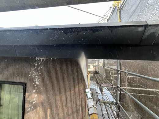 受樋はゴミや砂が溜まり苔が発生しやすい場所です、雨水の流れを悪くしてしまうので掃除していきます