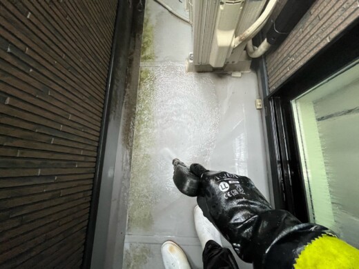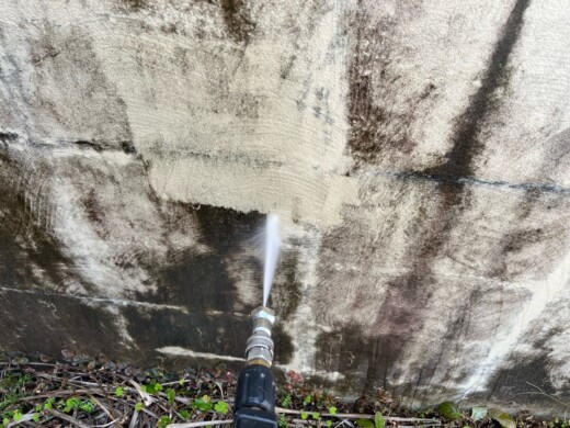 建物に付着している砂や汚れ、苔、カビなどを洗い流しキレイにしていきます
