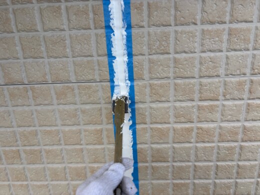 既存のコーキングを撤去後、プライマー塗布を行い新しいコーキングを入れていきます